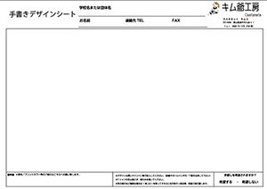 手書きのデザイン画しかない場合でもデータを作ることは可能です (簡単なデザインでしたら無料ですが、別途デザイン料が発生する場合もあります)。 ご要望のデザインを提案できます。